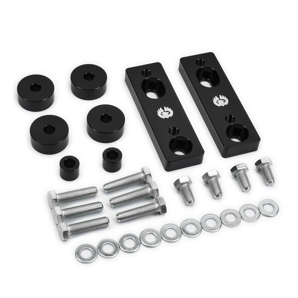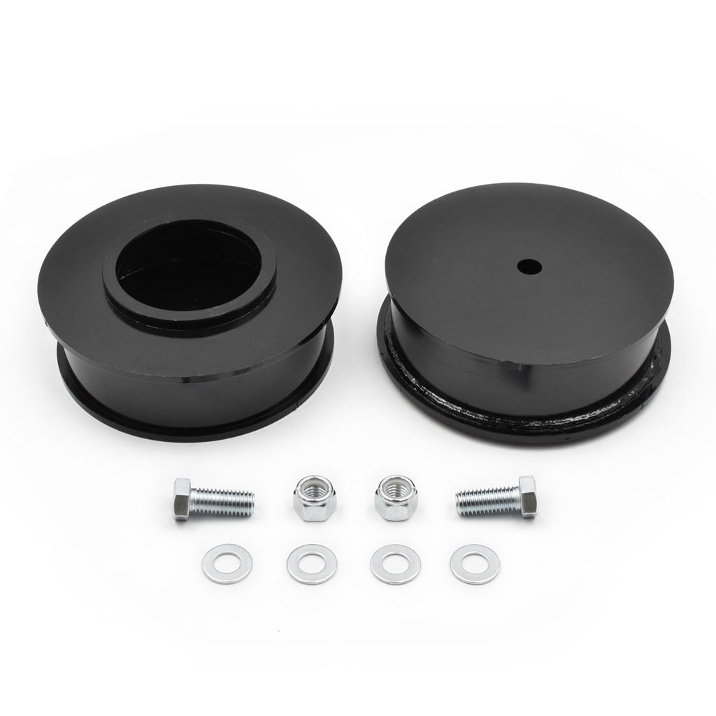 Our TORCH Off Road strut spacers are an easy way to get 3" of lift in the front. Installs right on top of your strut so you won't need longer shocks. Differential drop and skid plate spacers are included with this kit to keep your front axles at optimal levels (for 4X4 models). The sway bar drop helps keep the clearance between your strut and sway bar during articulation and the kit comes with radiator support bracket spacers which allows you to reuse factory skid plates.